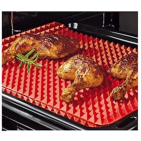 O design inteligente do tapete permite que o ar circule uniformemente de cima para baixo, envolvendo os alimentos e garantindo um cozimento perfeito. Ele também possui pequenos sulcos que permitem que a gordura escorra, tornando suas refeições mais saudáveis.