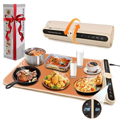Bandeja de aquecimento de alimentos tapete de aquecimento para alimentos com design atualizado de tapete de prato quente, temporizador de 6 velocidades, controle de temperatura de 9 níveis, seguro para 18 horas e tempo curto, armazenamento conveniente, limpeza fácil, trava segura para crianças, altura certa, não danifica a mesa, design antiqueimadura, economia de energia, leite quente, chá quente, café quente, assar, descongelar e secar pode ser feito tapete de aquecimento de alimentos tapete de aquecimento elétrico essencial tapete de aquecimento de mudas tapete de calor aquecido tapete resistente - 9 ajustes de temperatura ajustáveis, desligamento automático 1Hs-6H? O tapete de aquecimento de alimentos Alfolo Temp Master oferece temperatura precisa. conjunto de 40 °C, 50 °C a 110 °C, 120 °C, que pode ser amplamente utilizado como acelerar a fermentação da massa ou descongelar refeições rapidamente. 40 °C é a melhor temperatura. para proteger nossa mucosa da garganta, 40 °C - 122 ° C, pode preservar melhor o conteúdo nutricional do leite, etc. Temporizadores de 1 a 6 horas e desligará automaticamente. Este tapete de aquecimento para alimentos é benéfico para uso em buffet, reuniões, festas, usos diários. - ?Tela sensível ao toque fácil de usar? A interface intuitiva da tela sensível ao toque permite ajustes fáceis de temperatura e temporizador, proporcionando uma experiência de usuário perfeita. Idosos ou jovens também podem começar facilmente. Suporta vários utensílios de mesa como aço inoxidável, esmalte, cerâmica, frigideira, vidro, tigela de papel alumínio, caixa de pizza, etc. O tamanho de 58 x 38 cm pode armazenar até 6 a 7 pratos e é compacto Perfeito para muitas mesas, o que o torna ideal para uso doméstico e comercial. - ?Aquecimento rápido de superfície total e segurança 8s com certificação UL, FCC?Esta bandeja de aquecimento elétrico tem 330 W que pode esquentar rapidamente em 8s e aquecer sobre a superfície inteira e desligar automaticamente após o tempo definido. Se o tempo não estiver definido, ele também desliga automaticamente após 18 horas para segurança, evitando o superaquecimento da placa quente, aquecedor seguro de alimentos. Projetamos com pés antiderrapantes de 10 cm de altura para proteger bem a bancada após vários testes, então é definitivamente uma bandeja de aquecimento elétrico ajustável em temperatura confiável para jantares ou presentes. Excelentes aquecedores de alimentos para festas também! - ?Tapete de silicone rolável durável, fácil de limpar, fácil de armazenar?: Feito de silicone de alta qualidade resistente ao calor, esta almofada de aquecimento portátil é projetada para uso duradouro, como servidores buffet e aquecedores e pode suportar altas temperaturas sem comprometer a segurança. Resistente a óleo, fácil de limpar e armazenar, almofada de aquecimento portátil, altura dos pés portáteis de 11 cm para proteger até mesmo a bancada de granito, deve ter tapetes de aquecimento de alimentos para bancada, bandejas de aquecimento elétrico. para alimentos. - ?Compatibilidade versátil?: esta almofada de aquecimento versátil é aquecedor de alimentos para festas, bandejas de aquecimento para buffets, aquecedor de café, mantém seus pratos, leite quente, oferecendo calor consistente e uniforme com controle total sobre a temperatura e o tempo. Além disso, pode ser uma bandeja de descongelamento para carne congelada, aquecedor de massa fermentada, máscara facial de aquecimento, toalha, chá, fermentação de massa, tapete térmico de mudas, almofada de mesa aquecida, calor tapete resistente, catering aquecedores de alimentos.
