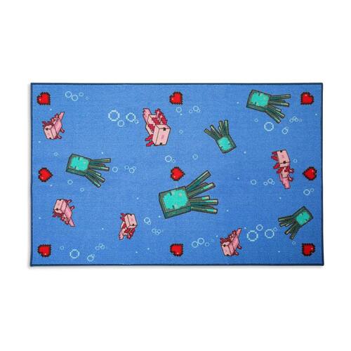 - Estilo perfeito em pixels: o tapete retangular mostra todos os seus personagens subaquáticos favoritos do Minecraft em um design azul vibrante. Apresenta Axolotls, Glow Squids, corações e bolhas, como visto no videogame.