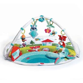 Tapete de Atividades Gymini Dynamic Meadow Days - Tiny Love 0-6 meses Permita que o bebê desfrute das luzes e música suave, ou brinque com o pássaro-Sininho ou com as bolinhas do chocalho, que são para sua diversão e entretenimento. Coloque o bebê no tapetinho, de barriga para baixo e na frente do espelho para que ele se agrade dessa posição e fortaleça os músculos do pescoço e ombros. Um tapetinho de atividades super versátil para o bebê, equipado com arcos modulares especialmente concebidos para criar 3 modos de uso que estimulam o bebê e contribuem para o desenvolvimento das habilidades motoras fina e global do nascimento à primeira Modo 1: Deitado de costas - Um travesseirinho confortável e uma seleção variada de brinquedos interessantes ajudam a prolongar a permanência do bebê nestas posições, distraindo-O de maneira agradável. Modo 2: Deitado de bruços - O traveseirinho oferece apoio e o espelinho chama a atenção da criança, prolongando a permanência do bebê nesta posição, contribuindo para o desenvolvimento motor. Modo 3: Sentado - O arco se dobra, transformando-Se num centro de atividades com os brinquedos ao alcance da criança, incentivando a motricidade fina e fortalecendo a posição sentada. Modere o nível de estímulo oferecido pelo Gymini 1-2-3 Eu Cresço Selecionando a quantidade de brinquedinhos no campo visual do bebê. Você pode estimular sensação de controle corporal do bebê colocando-O de bruços e permitindo-Lhe explorar o tapetinho. Reduzindo o estímulo Se seu bebê parece desconfortável ou agitado (chorando, desviando o olhar, etc.) reduza o nível de estimulação. Por exemplo, deixe apenas um brinquedo em seu campo de visão ou desative o recurso de luzes e música. Você também pode remover o arco de atividades ou cobrir parte do Gymini com um tecido macio. Fique ao lado do bebê e acaricie-O suavemente até que ele se acalme. Aumentando o estímulo Se seu bebê parece desinteressado ou entediado, tente adicionar mais brinquedos ao arco de atividades, ativando o recurso de luzes e música e, ocasionalmente, movendo os brinquedos ao redor. Divirta o bebê com o sininho de pássaro, a zebrinha ou os chocalhos. Gradualmente, reduza o nível de estimulação para estimular o foco do bebê sobre um dos elementos. Estimular Sensações e Controle Corporal Para estimular as sensações e controle corporal do bebê, coloque-O de bruços. Permita que ele examine seu reflexo no sapo/espelho ou explore as texturas do tapete. Monitore as reações do bebê e tente ver quais recursos ele gosta mais e quais ele dispensa. Medidas Da Embalagem: Peso: 1,5 kg Altura: 58 cm Largura: 7 cm Comprimento: 80 cm