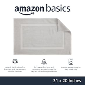Tapete de banho de banheiro Amazon Basics Banded, prata macia, 31 polegadas L x 20 polegadas W