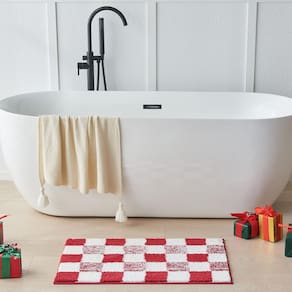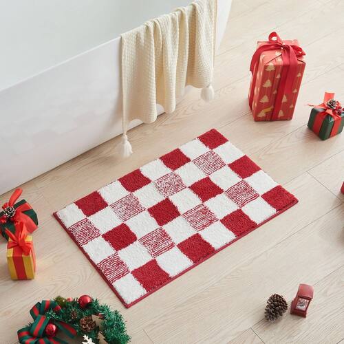 - ?Unique Christmas Checkered Design?The CozeCube Christmas Checkered bath mat chose one of the most iconic American checkered pattern, comes in two colors, with cream white being one of which. During the holiday season plaid and checkered patterns spring up all around you. it remains popular today because of its cheery, bright appearance. The CozeCube Checkered bath mat brings you a festive atmosphere.