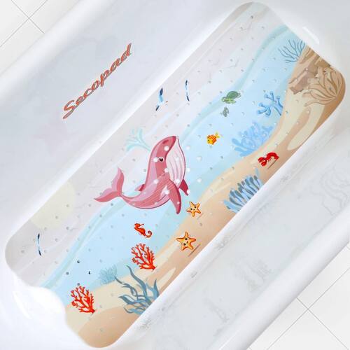 Tapete de banho para bebês Secopad Cartoon Non Slip 100x40cm Rosy Whale