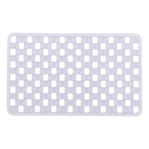 Características: Este tapete evita derrapagens e escorregões durante os banhos. Com ventosas que se fixam ao piso frio, permanece grudado mesmo quando molhado. Feito de plástico polipropileno transparente, possui formato retangular para cobrir uma área considerável no espaço do box.