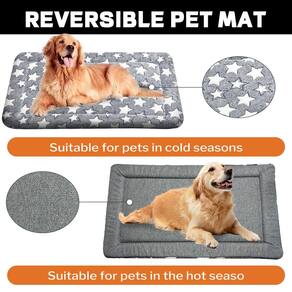 - Dupla face para conforto em todas as estações: este tapete de cama para cães apresenta um design reversível adaptado para uso durante todo o ano. Um lado é feito com pelúcia macia e quente — ideal para manter seus animais de estimação aconchegantes durante os meses mais frios. O outro lado é feito de lona respirável, oferecendo uma superfície fresca e confortável, perfeita para dias mais quentes.