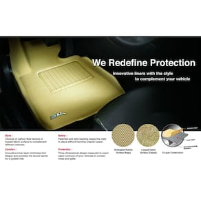 - O ajuste perfeito - Usando tecnologia de escaneamento a laser de alta precisão, cada tapete é feito sob medida para seu veículo com cobertura máxima em comparação com tapetes Autêntico e universais. As bordas laterais levantadas evitam que a sujeira entre por baixo do carpete.