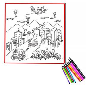 A brincadeira de pintar e colorir é muito mais divertida e colorida! São 6 cores de canetas para escolher, identificar os veículos da cidade e pintar do jeito que quiser. O tapete é lavável e permite brincar quantas vezes quiser! Tapete com tecido macio e seguro, produzido em materiais não-tóxicos e desenvolvidos para crianças, e as canetinhas possuem tinta lavável. O Tapete possui dimensões de 50X50cm.