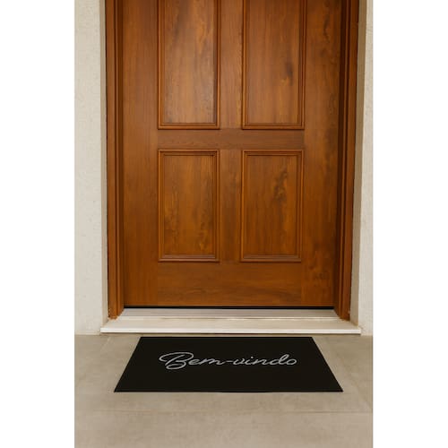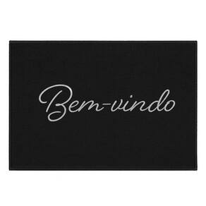 Tapete De Entrada 100% Poliéster Base Látex Antiderrapante 60x40cm Bem-Vindo Preto -