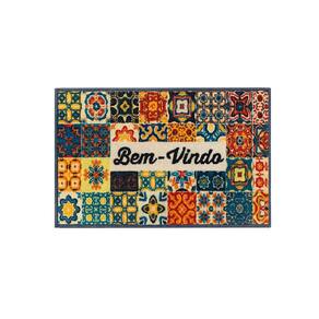 Tapete De Entrada 100% Poliéster Base Látex Antiderrapante 75x45cm Azulejos -