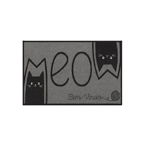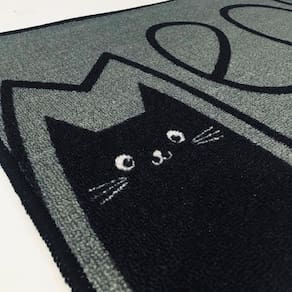 Tapete De Entrada 100% Poliéster Base Látex Antiderrapante 75x45cm Gato Meow -