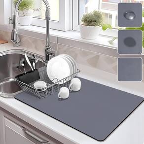 Rápida absorção de água e secagem: o tapete de secagem de louça de microfibra é feito de nanomateriais de alta absorção. O tapete de secagem é macio e absorvente, que pode secar rapidamente e esconder bem as manchas. Além disso, o tapete de pratos é espesso o suficiente para proteger melhor bancadas, utensílios de mesa e vidros de danos e poluição. - Rápida absorção de água e secagem: o tapete de secagem de louça de microfibra é feito de nanomateriais de alta absorção. O tapete de secagem é macio e absorvente, que pode secar rapidamente e esconder bem as manchas. Além disso, o tapete de pratos é espesso o suficiente para proteger melhor bancadas, utensílios de mesa e vidros de danos e poluição. - Tapete de secagem de pratos: cada tapete de balcão de cozinha, que é maior do que os tapetes de drenagem comuns e pode conter panelas grandes, panelas e mais pratos. Os tapetes de prato são perfeitos para debaixo da pia, bancadas do banheiro. - Fácil de gerenciar e limpar: o tapete de secagem de cozinha pode ser enrolado e armazenado na gaveta sem ocupar espaço extra. Se o tapete do balcão da cozinha precisar ser limpo, basta enxaguar debaixo d'água. Após o enxágue, pode ser colocado em azulejos na bancada ou colocado em um cabide para secar por circulação normal de ar. - Antiderrapante e durável: o forro traseiro do tapete de tingimento é feito de borracha natural de alta qualidade, que mantém a máquina de café, copo de água ou qualquer outro item no lugar, e também evita que a água penetre na mesa. A borracha durável é resistente ao rasgo e ao desgaste, pode sempre proteger bem sua mesa. - ampla variedade de usos: este tapete de secagem de cozinha pode ser colocado em qualquer lugar que você queira absorver água, como bancadas de cozinha, prateleiras, embaixo da pia, bancadas de banheiro, mesa de jantar, também ótimo para animais de estimação como jogo americano ou cama.