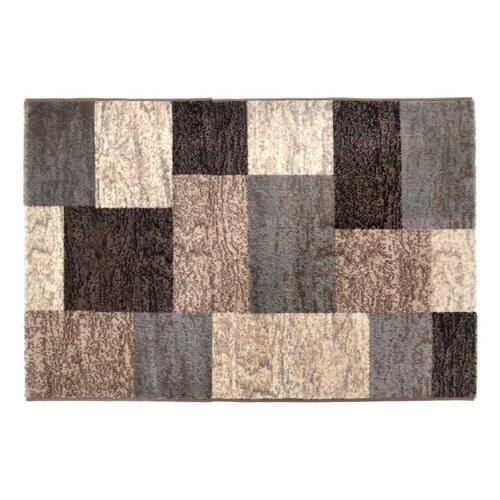 Cód: 15378-PL Tapete Decorativo Geométrico Material: Polipropileno Cor: Preto, marrom, bege e azul Dimensões: 140x100x10cm (CxLxA)
