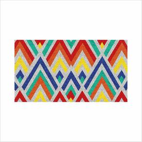 Tapete tipo Capacho Vinil com fibras entrelaçadas e costado emborrachado com arte pinta em tinta vinílica especial.