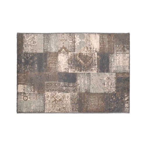 Cód: 15386-PL Tapete Decorativo Patchwork Material: Polipropileno Cor: Cinza, bege e marrom Dimensões: 140x100x10cm (CxLxA)