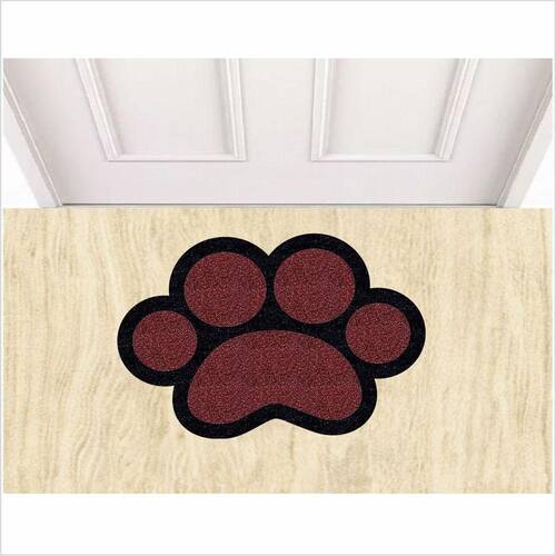Tapete tipo Capacho Vinil com fibras entrelaçadas e costado emborrachado com arte pinta em tinta vinílica especial.