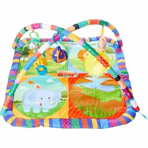 Tapete e Centro de Atividades - Animais - Zoop Toys: O centro de atividades com tapete da Zoop Toys foi especialmente projetado para estimular o desenvolvimento do bebê, aguçando os cinco sentidos através de peças de diferentes cores, texturas, formatos e sons. Os arcos se dobram, transformando o tapete em um prático trocador de fraldas. Pode ser facilmente transportado e guardado. Detalhes: • O tapete acolchoado é confeccionado em tecido macio e atóxico. Confortável e com cores vibrantes, estimula a curiosidade e sensibilidade da criança, além de contribuir para o desenvolvimento físico. • O acessório reflexivo imita um espelho. Permite a criança reconhecer seu reflexo e construir sua autoimagem • As almofadas de bichinho com estampas coloridas estimulam a visão e o tato do bebê • Os chocalhos fazem barulho e entretêm o bebê • Os arcos são removíveis, permitindo que o tapete também seja utilizado como trocador • Tapete almofadado e lavável e pendentes removíveis • Enchimento são 100% poliéster Informações: • Produto: Tapete Centro de Atividades • Marca: Zoop Toys • Cor: Colorido • Tipo: Centro de Atividades com Tapete • Categoria: Brinquedos para Bebês • Subcategoria: Tapetes e Ginásios de Atividades • Dimensões (C x A x L): 92 x 63 x 42 cm • Conteúdo: - 01 tapete - 02 arcos - 05 pendentes • Recomendação: para bebês a partir de 00 até 24 meses de idade Especificações: • Referência: ZP00179 • Código de Barras: 7898588087482 • Embalagem (C x A x L): 61.5 x 46 x 7.5 cm • Embalagem (Peso): 1.264 Kg • Material / Composição: - Estrutura e brinquedos: Plástico - Tecido 100% Poliéster • Registro: 006147/2019 • Certificado: Órgãos Autorizados - OCP´S (Organismos de Certificação de Produtos) Aviso: • As imagens são meramente ilustrativas • Os pesos, tamanhos e medidas são aproximados • As cores e estampas dos produtos podem ter variações • As informações são de responsabilidade do fabricante ou fornecedor