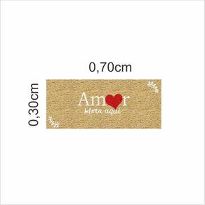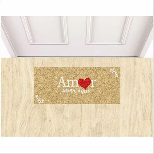 Tapete Emborrachado Amor Mora Aqui 70X30 cm Varias Cores. - Cor: Bege