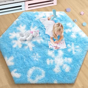 EVOIONOS Forzen Tapete de barraca de princesa, tapetes congelados de 10 x 12 metros para quarto de meninas, tapete de floco de neve fofo para decoração de quarto de princesa congelada, tapete de pelúcia para quarto de crianças, sala de jogos, berçário, tapetes hexagonais, azuis, princesas, decoração de quarto congelado - ?Superfície supermacia?A superfície dos tapetes Evoionos atualiza a fibra sintética mais macia feita de textura suave para a pele, não desbota, sem fiapos, fácil de limpar. - ?Segurança traseira antiderrapante?A parte inferior é projetada com esponja respirável e inúmeros pontos de aderência de borracha, adota tecnologia avançada de bainha mecânica, caminhar no tapete peludo não é apenas seguro e antiderrapante, mas também pode trazer a você uma sensação de pé relaxado e confortável. - ?Fácil de limpar?Use aspirador de pó ou pegue e agite o tapete em cima do tapete macio, limpe a mancha com uma toalha úmida e sabão, recomendamos lavar à mão e secar ao ar, o que pode prolongar a vida útil do tapete. - ?Design hexagonal elegante?O tapete hexagonal de pelúcia pode ser decorado para uma variedade de cenários de uso, perfeito para quarto infantil, sala de jogos infantil, dormitório, área de leitura, quarto e pode trazer calor e conforto. - ?Embalagem de tapetes?Nossos tapetes infantis são equipados com embalagem a vácuo, a pilha de fibra na superfície do tapete não é fofa o suficiente quando utilizado pela primeira vez, há alguns vincos. Este é um fenômeno normal, coloque o tapete plano por 2 a 3 dias e espere pacientemente por sua recuperação, pedimos desculpas pelo inconveniente. Se você tiver alguma dúvida, envie-nos um e-mail e responderemos dentro de 24 horas.