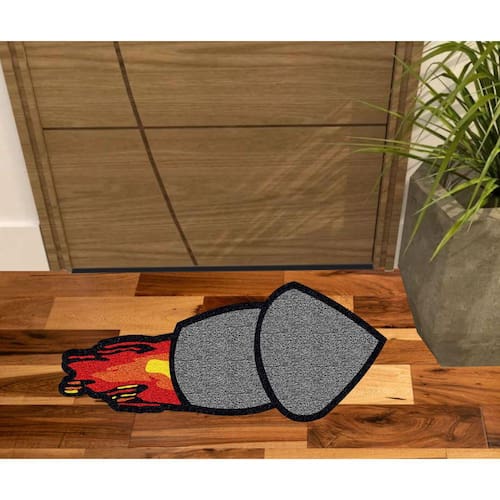 Tapete tipo Capacho Vinil com fibras entrelaçadas e costado emborrachado com arte pinta em tinta vinílica especial.