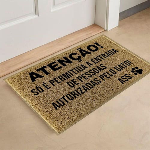 Tapete Gato 60x40cm Tapete Só é Permitida a Entrada de Pessoas Autorizadas Pelo Gato Tapete decorativo para sua casa. Características: Tamanho: 60 Cm X 40 Cm Material: Vinil Personalização: Pintado Cor Do Fundo: Bege Borda: Rebaixada 2cm Cor Do Logo: Preto. Marca: Não Informado Ean: 7908405800344