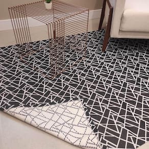 Tapete Geométrico Preto Cinza 135x200cm Retangular Escritorio Quarto Casal Jacquard.