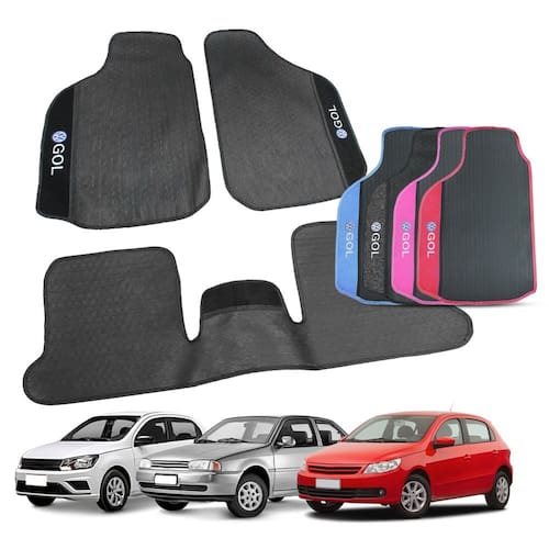 JOGO DE TAPETE AUTOMOTIVO BORRACHA PVC GOL 1981 A 2023 COM DETALHES COLORIDOS 3 PEÇAS