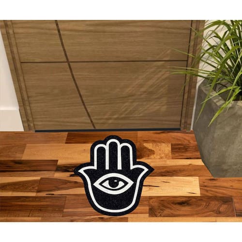 Tapete Capacho Vinil com fibras entrelaçadas e costado emborrachado com arte pinta em tinta vinílica especial.
