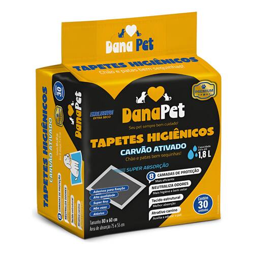 O Tapete Higiênico 60x80cm Carvão Ativado da Dana Pet Super Absorvente é a escolha ideal para quem busca tapete para cachorro de alta absorção, sinônimo de higiene e tecnologia. Com 8 camadas de Proteção, absorção ultra rápida, neutralizador de odores, e com capacidade de absorção até 1,8 litros, é perfeito para cães de pequeno porte, garantindo xixi seco, sem vazamentos, sem mau cheiro e compacto.