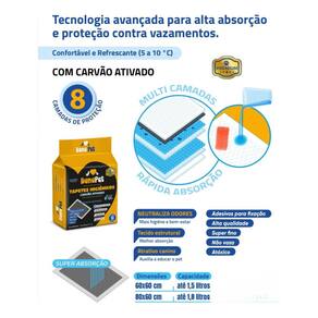 Tapete Compacto Super Absorvente Carvão Ativado PREMIUM Absorção: Ultra Rápida, mantém as patas secas após o xixi, Tamanho: 60x80 cm Camadas: 8 camadas Quantidade por pacote: 30 unidades Marca: Dana Pet Marca: Não Informado