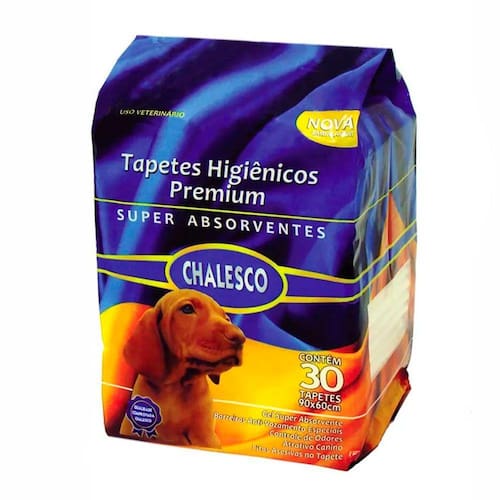 Tapete Higiênico Para Cães Chalesco C/30 Unidades - Indicado para cães; - Com gel super absorvente; - Controle de odor; - Atrativo Canino; - Barreiras anti-vazamento; - Tamanho 90x60cm. A Importância do tapete higiênico para cachorro Há um bom tempo, ter um cachorro em casa significava bagunça no ambiente, já que era necessário recorrer à utilização de jornais para definir os espaços que os cãezinhos poderiam realizar suas necessidades. Com as atualizações do mercado, o Tapete Higiênico Chalesco surgiu para realizar a mesma função, só que com muitas vantagens em relação ao jornal. Tapete Higiênico para Cães Chalesco 30 unidades O Tapete Higiênico para Cães Chalesco 30 unidades apresenta poderoso gel absorvente que mantém o ambiente limpo, seco e sem odores desagradáveis. Ele imita a textura de um gramado artificial, oferecendo mais conforto aos animais. Além disso, o tapete possui adesivos para prender no chão ou na parede. Além disso, é confeccionado em materiais resistentes, com barreiras anti-vazamentos especiais, que impedem os vazamentos de fezes. Vantagens do tapete higiênico para cachorro Produzido em material super-absorvente, o tapete conta conta com um gel, como as fraldas de bebês, na qual os animais se adaptam facilmente ao tapete, já que os bichinhos sempre procuram superfícies que absorvam e escondam as suas fezes. Os tapetes higiênicos para cachorros são objetos que garantem a organização e a limpeza do ambiente, eles não sujam as patas do cãozinho, são capazes de absorver o líquido sem sujar o chão e ainda neutralizam o cheiro do xixi. Assim, ter um cãozinho fica muito mais fácil! Tapete Higiênico para cães funciona? Determine o local que o cão realizará as suas necessidades, este lugar deve ficar separado da área de alimentação e da cama do animal, além de espaços com passagem de pessoas. Enquanto ao animal estiver em processo de adestramento, coloque mais de um tapete para evitar acidentes. Outra técnica para introduzir o uso do tapete higiênico é fixá-lo próximo ao lugar onde o animal já faz as necessidades, após o costume transfira-o até o lugar desejado. Tapete Higiênico: como ensinar o cachorro a utilizar Para estipular regras e estabelecer comandos aproveite a infância de seu bichinho, ela é a fase ideal para o animal adquirir hábitos. Pensando em facilitar os ensinamentos, escolha um local fixo e reservado para inserir o Tapete Higiênico para Cães Chalesco 30 unidades. Além disso, utilize brinquedos, petiscos e muito carinho como um sinal positivo, deixe claro para o cachorro que ele está agindo corretamente. Como escolher o tapete higiênico para cachorros? Existem diversos modelos de tapetes no mercado e cada especificação varia de acordo com a utilização do animal. Ao escolher, é importante considerar o nível de absorção do xixi, alguns modelos possuem gel e são mais resistentes para vazamentos. Além disso, se atente ao tamanho do tapete, afinal, seu amiguinho precisa se sentir à vontade para fazer suas necessidades.