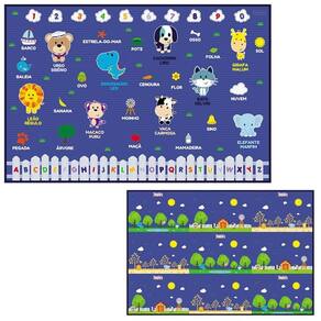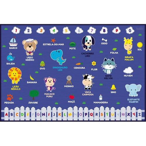 Tapete Infantil Azul Dupla Face Turminha Animal - Unik TI1824-M