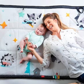 O Tapete Super Mat Meadow Days é versátil e confortável, contando com diversas atividades que estimulam o bebê e contribuem para o desenvolvimento das habilidades motoras.