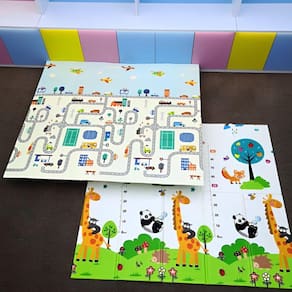 Tapete Tatame Infantil Emborrachado Dobrável Macio Com Bolsa Dupla FaceOs primeiros anos da criança são de muitas descobertas sensoriais, progresso físico e aprendizagem. O Tapete Emborrachado além de estimular um andar confortável, ajuda a desenvolver o reconhecimento de cores e figuras. O produto tem uma textura macia e é fácil de limpar.Possui a espessura adequada para amaciar o chão quando seu bebê estiver engatinhando, dando maior proteção, pois é preenchido com espuma de alta densidade, deixando a superfície mais macia e o toque mais suave. Possui efeito antiderrapante com textura piramidal, além de ser impermeável. A mamãe leva apenas 3 segundos para dobrá-lo, tornando a arrumação muito mais rápida.TAPETE DUPLA FACE (POSSUI A MESMA ESTAMPA FRENTE E VERSO)!Características do Tapete:- Dupla Face- Impermeável;- Base antiderrapante;- Fácil de limpar e durável;- Cobertura macia e acolchoada;- Pode ser levado para atividades ao ar livre;- Não transmite a temperatura do chão para o bebê;- Fácil transportar e guardar, tapete leve e dobrável;- Estampa de desenhos com cores vibrantes e divertidas;- Atóxico: Não contém metais pesados e nem químicas tóxicas;- Pode ser utilizado no quarto das crianças, na sala, em escolas, berçários, salas de recreação e parques.LIMPEZA E CUIDADOS:- Necessita apenas um pano úmido (evitar produtos químicos abrasivos);- Não usar em pisos sem acabamento, pois irá danificar o tapete;- Não desembalar/manipular com objetos cortantes (tesouras,estiletes,facas,etc).Contém:01 Tapete Dobrável Dupla Face 01 Sacola com alças.Medidas: 2,00(C)x1,80(L)Espessura: 1CM