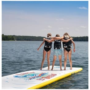 O Aqua Mat 18 é o brinquedo de barco definitivo para toda a família. É um tapete inflável flutuante projetado para deslizar, brincar e todos os tipos de diversão aquática Construído de material de PVC de ponto de gota extremamente durável que não afunda, enrola ou rasga. Sua durabilidade suportará muito uso, inclusive tendo o cão da família se juntando à diversão Sua versatilidade é ilimitada.