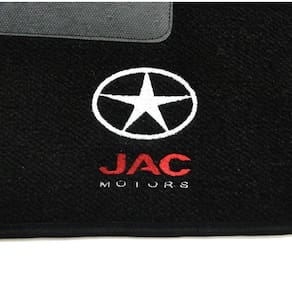 Tapete Jac J5 Carpete Base Pinada Jogo de tapete linha Elithe carpete com espessura de 5mm na cor preta com base antiderrapante em pvc pinado. Bordado com a grafia e nome, lavável. Jogo com 4 peças.