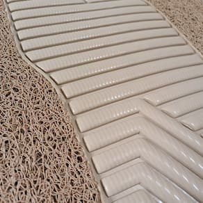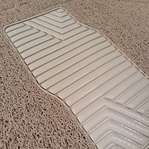 Os tapetes são confeccionados em vinil e estão disponíveis em duas cores: Preto e Cinza. Eles não possuem borracha e não utlizam cola para sua fixação, são livres de cheiros fortes de produtos químicos.