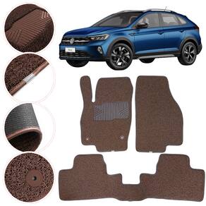 Elegância: Tapete personalizado por modelo de veículo, cobrindo totalmente os espaços dianteiros e traseiros. Tapete em Vinil Gold flexível, com bordas em couro da mesma cor.