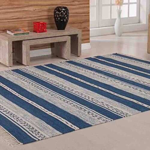 Perfeito para dar uma cara nova ao ambiente, o tapete Kilim é conhecido por ser um tapete moderno e versátil, simples e lavável. Seu tingimento natural e composição em algodão garantem ao produto durabilidade e qualidade. O tapete Kilim Raipur possui estampa de listras que dão um toque contemporâneo sem perder o requinte do ambiente. Além de proporcionar uma experiência única, o tapete também é uma ótima opção para quem deseja caprichar na decoração, pois possui um design étnico moderno e arrojado que garante todo o charme e elegância do produto.