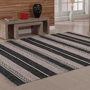 Perfeito para dar uma cara nova ao ambiente, o tapete Kilim é conhecido por ser um tapete moderno e versátil, simples e lavável. Seu tingimento natural e composição em algodão garantem ao produto durabilidade e qualidade. O tapete Kilim Raipur possui estampa de listras que dão um toque contemporâneo sem perder o requinte do ambiente. Além de proporcionar uma experiência única, o tapete também é uma ótima opção para quem deseja caprichar na decoração, pois possui um design étnico moderno e arrojado que garante todo o charme e elegância do produto.