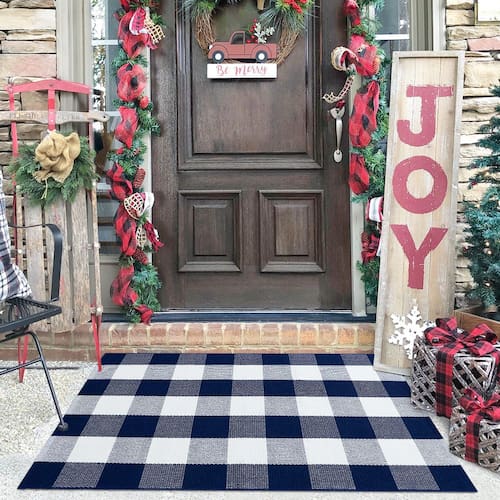 Os tapetes xadrez KILOCOCO Buffalo são os melhores disponíveis na Amazon em qualidade. Trabalhamos muito para fazer os tapetes da melhor qualidade disponíveis para você. Uma ideia de presente perfeita – Esta é a melhor escolha para presentes de aquecimento doméstico, presentes de Dia das Mães, presentes de Natal, presentes de Natal e presentes de Ação de Graças. Para sua própria segurança, use este tapete externo com um tapete antiderrapante ou um prendedor de tapete em um piso de madeira ou mármore. 100% DE SATISFAÇÃO DO CLIENTE GARANTIDA Os tapetes KILOCOCO são projetados e testados nos EUA e depois feitos no exterior com os mais altos padrões para oferecer a você o melhor preço. Garantimos o nosso produto 100%. Se você não estiver satisfeito por qualquer motivo, reembolsaremos ou enviaremos uma substituição. Sem perguntas. ? Fácil de cuidar: aspirador de pó; lavar à máquina a frio e no ciclo delicado; pendurar para secar. ? Ecológico e durável; design moderno e elegante ?Cor: azul e branco; design contemporâneo e tapete de aparência clássica ? Use este tapete firmemente tecido como um tapete antifadiga na cozinha, despensa e lavanderia. ? Melhor escolha para presentes de aquecimento doméstico, presentes de Dia das Mães, presentes de Natal, presentes de Natal e presentes de Ação de Graças Observação: 1. Considere uma diferença de 1,5 cm devido à medição manual. 2. Pode haver uma pequena diferença de cor devido à luz e ao ângulo da fotografia. Sinta-se à vontade para entrar em contato conosco se tiver alguma dúvida. Desejamos que você aproveite suas compras! - Mais grosso e pesado: feito de uma mistura de algodão e poliéster de alta qualidade, nosso capacho para ambientes externos é mais espesso e pesado do que os tapetes típicos para ambientes externos. Tecido à mão para maior durabilidade, resiste ao desbotamento e adiciona um toque elegante e duradouro a qualquer cômodo - Estilo versátil para qualquer espaço: este tapete xadrez de búfalo apresenta um padrão xadrez moderno, ideal para vários ambientes. Combine o tapete azul marinho e branco com um tapete de porta para um visual elegante em camadas, melhorando o charme da sua entrada durante todo o ano - Fácil de limpar: manter este tapete lavável é simples, basta aspirar ou agitar para mantê-lo fresco. Para uma limpeza mais profunda, lave à máquina em um ciclo delicado e seque ao ar. Não usar alvejante para preservar as cores vibrantes do tapete ao ar livre e prolongar sua vida útil - Tapete para ambientes internos e externos: com seu design chique e moderno, este tapete xadrez se adapta a vários espaços, sala de estar, sala de jantar, quarto ou varandas espaçosas. Seu tecido resistente à luz solar mantém a cor vibrante, tornando-o adequado para uso interno e externo - Aviso de uso ao ar livre: este tapete pode ser utilizado ao ar livre, mas tome cuidado extra em clima úmido. Se ocorrer chuva, limpe e seque prontamente para manter sua qualidade para uso prolongado - Observação para tapetes de tecido: nosso tapete de tecido não tem um suporte antiderrapante. Para uso seguro, recomendamos combiná-lo com um capacho. Se usar o tapete sozinho, combine-o com um tapete antiderrapante para evitar escorregar - Presente atencioso: Elegante e funcional, este tapete xadrez de búfalo é ideal para inaugurações de casa, casamentos ou feriados como Natal, Dia das Mães ou Ação de Graças. Um complemento versátil para qualquer casa, certamente será apreciado pela família e amigos
