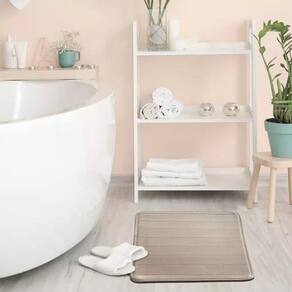 Tapete P/Banheiro Sublime Lajota 40x60cm Antilope Jolitex Tapete para banheiro antiderrapante, o tapete da linha sublime vai deixar a decoração do seu banheiro ainda mais aconchegante. Com uma superfície ultra macia, proporciona maior conforto no momento pós-banho. Além disso, possui uma excelente absorção e é de fácil lavagem e manutenção. Apresenta uma base antiderrapante que diminui o risco de deslizes e acidentes. Contém:01 tapete para banheiro medindo 40cm x 60cm Composição: superfície: 100% poliéstercamada intermediária espuma : 100% poliuretanoantiderrapante sintético Imagem ilustrativa. As cores podem variar de acordo com a configuração da tela/monitor. Marca: Não Informado Ean: 7896176901653