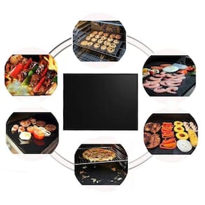 TAPETE ANTIADERENTE PARA CHURRASQUEIRA. Produto antiaderente multiuso para função antiaderente em alimentos em cozimento indireto para gás, carvão, lenha ou elétrico. Suporta até 260 graus Medidas 40cm x 30cm