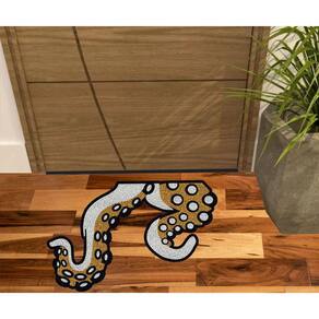 Tapete Capacho Vinil com fibras entrelaçadas e costado emborrachado com arte pinta em tinta vinílica especial.
