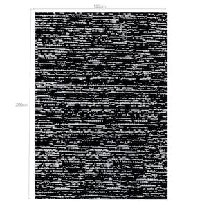 Tapete para Quarto Retangular Preto e Branco 135x200cm Antiderrapante Poliéster Odessa.