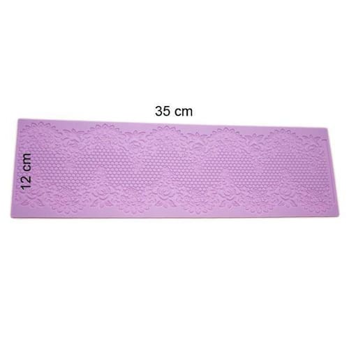 Tapete em silicone para renda de açúcar e pasta americana, ideal para criar bordas rendadas em bolos e cupcakes. Pode ser usado com preparos prontos para renda de açúcar.Chapa antiaderente