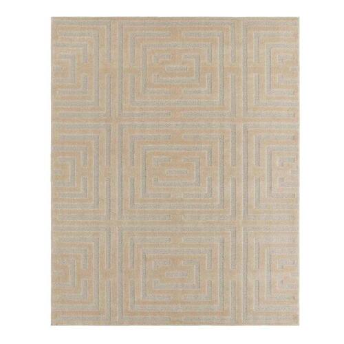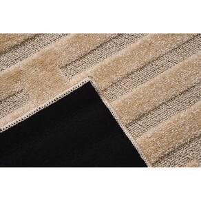 O tapete é feito de 100% polipropileno, um material durável e resistente, que permite uma fácil manutenção e limpeza. A altura do pelo é de 12mm, o que proporciona uma sensação agradável de maciez ao toque. Além disso, ele conta com detalhes de baixo relevo em 6mm, que dão textura e profundidade ao design abstrato.