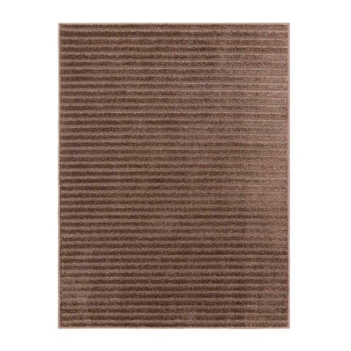 Este tapete é feito de 100% polipropileno, um material durável e resistente a manchas e desbotamento. Com uma altura do pelo de 12mm, o tapete é suave e confortável ao toque, proporcionando uma sensação agradável sob os pés. Além disso, os detalhes de baixo relevo em 6mm adicionam um elemento de textura sutil que complementa perfeitamente o design de listras.