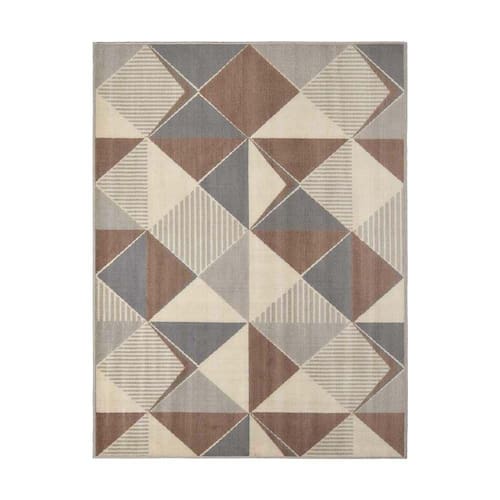 A estampa geométrica deste tapete é o seu destaque, apresentando uma combinação de formas e linhas que criam um efeito visual interessante e moderno. As cores sutis e elegantes do tapete complementam perfeitamente a estampa e permitem que ele se encaixe em uma variedade de estilos de decoração.