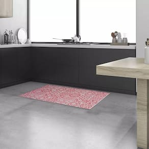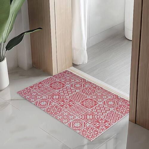 Tapete Passadeira Capacho Emborrachada Antiderrap. 0,65x1,00 Azulejo Vermelho Branco