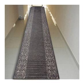 Tapete Passadeira Emborrachada Pvc Antiderrapante 0,65x5,00m Barrado Preto Bege